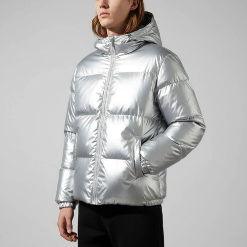 - Type: Vatteret herrejakke med hætte og lynlås.