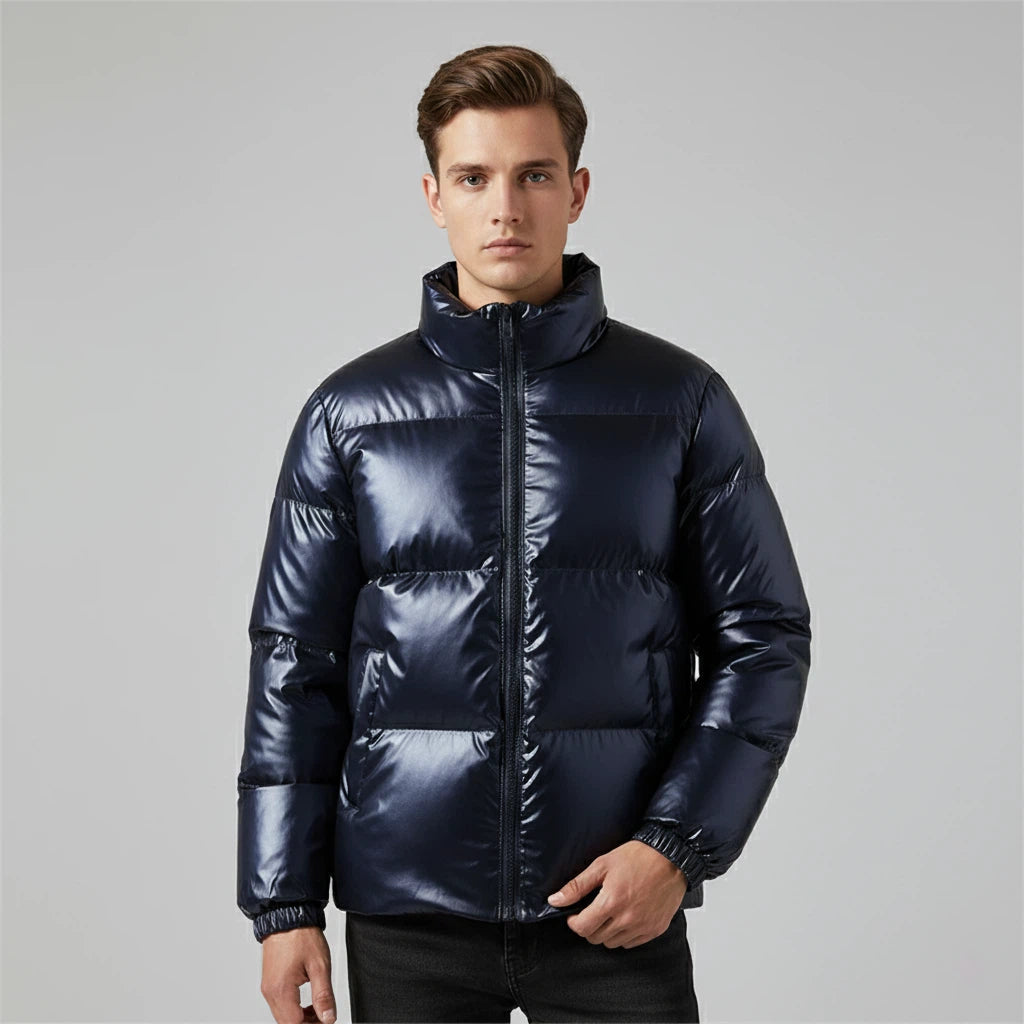 Denne vatterede herrejakke er en mellemlang model med fast hætte og gennemgående lynlås foran. Jakken er beregnet til daglig brug i køligere vejr og til enkle udendørsaktiviteter. Det ensfarvede udtryk gør jakken let at kombinere med forskellige typer beklædning til både fritid og pendling.