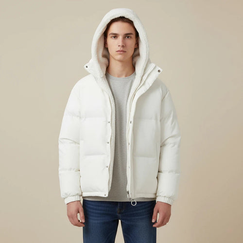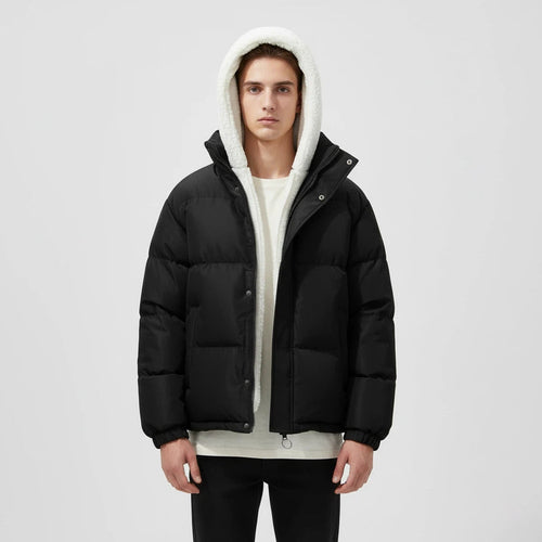 Vinterjakke med hætte sort og hvid | Daglig brug